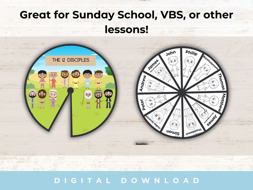 The 12 disciples, known as the Apostles, played pivotal roles in shaping the early foundations of Christianity as documented in the New Testament. Our 12 Disciples spinner craft is a great way to bring these stories of Jesus to life. These are great for homeschooling families, Sunday School lessons, or other personal use!