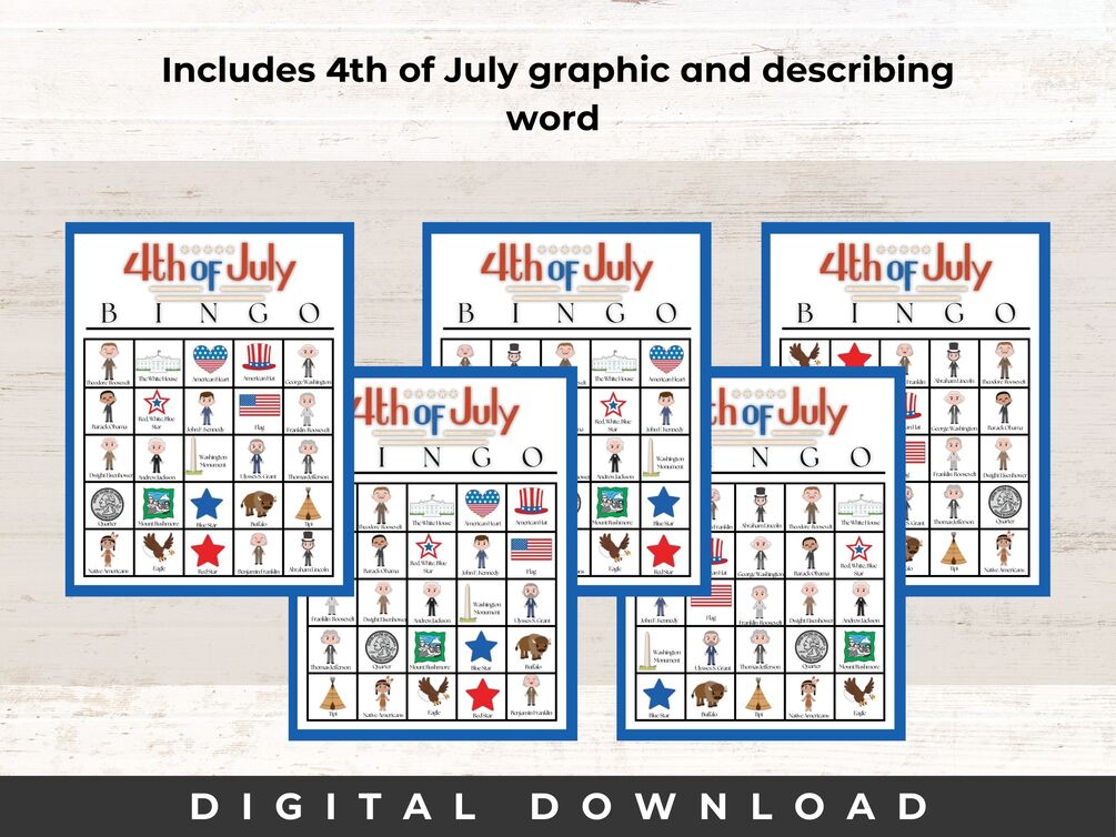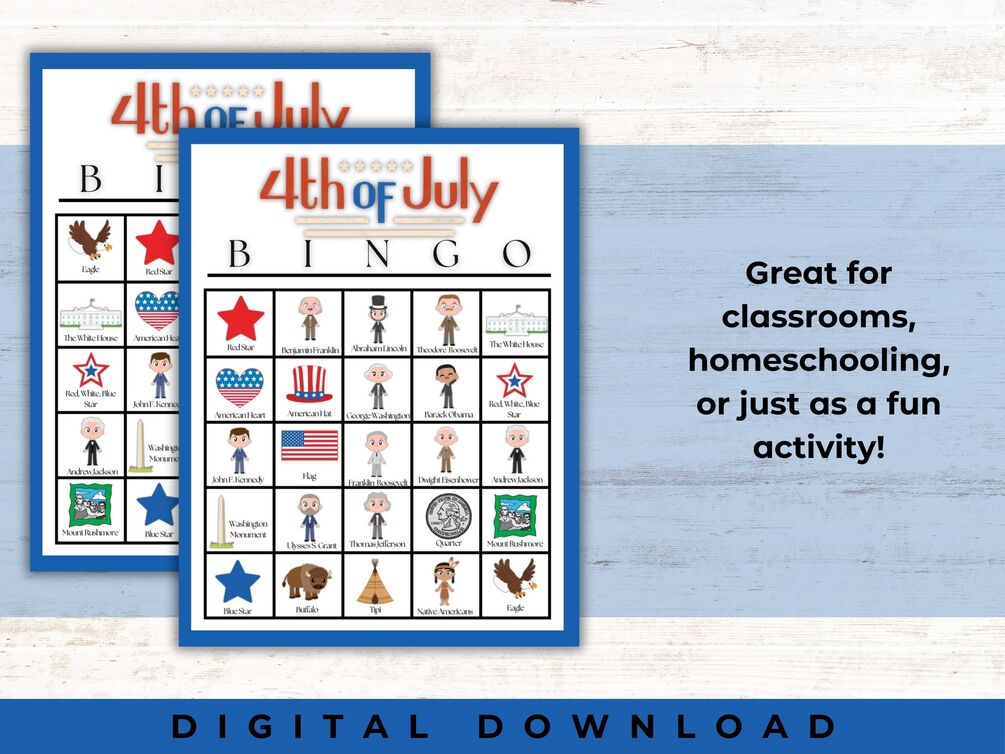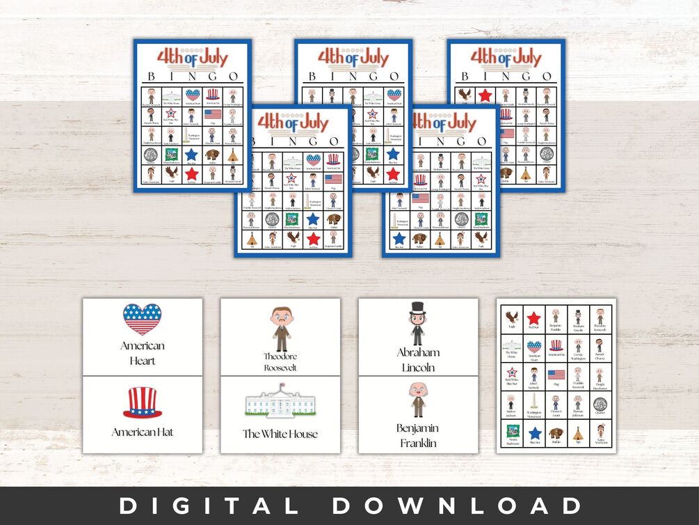 Independence Day is just around the corner, and what better way to celebrate this historic occasion than with a fun game of Bingo! Our 4th of July Bingo Cards Printable will have calling cards ready to announce each square, and uniquely adorned with all things patriotic. July 4th gatherings are bound to be unforgettable with this classic pastime. Whether you're hosting a backyard barbecue or a family reunion, bingo adds an extra layer of excitement to the festivities, making it a must-have activity for this special day.