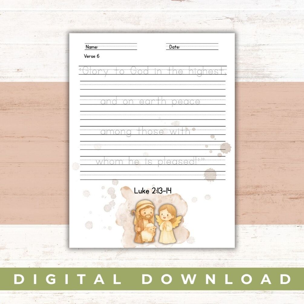 Christmas Bible Verse Handwriting, Tracing, Copywork, PDF