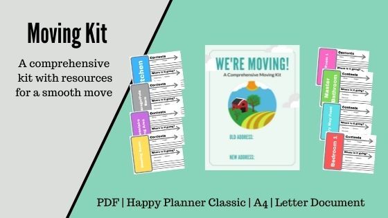 This Happy Planner Classic (US Document also available for download) sized will break down moving with clear organization for box moving, keeping track of address changes, billing changes, your realtor information, and other notes.