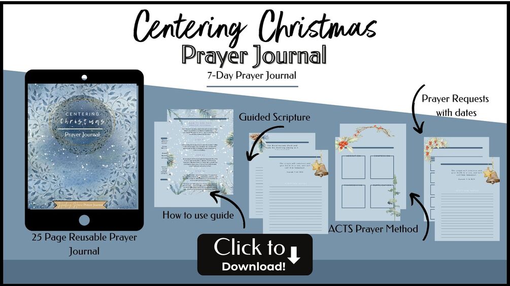 Welcome to the "Centering your Christmas" prayer journal! What does it mean to center your Christmas? It does not have to be as complicated as you may believe. In fact, it's very simple. The inspiration behind this prayer journal is that you will take these advent Bible verses and use them to remind and turn your heart towards the more important things of Christmas. Instead of the commercialized frenzy, you will begin to reflect and remember what this holiday is truly about. Not just a baby in the manger, but the Savior of the World; who died and lives for you.