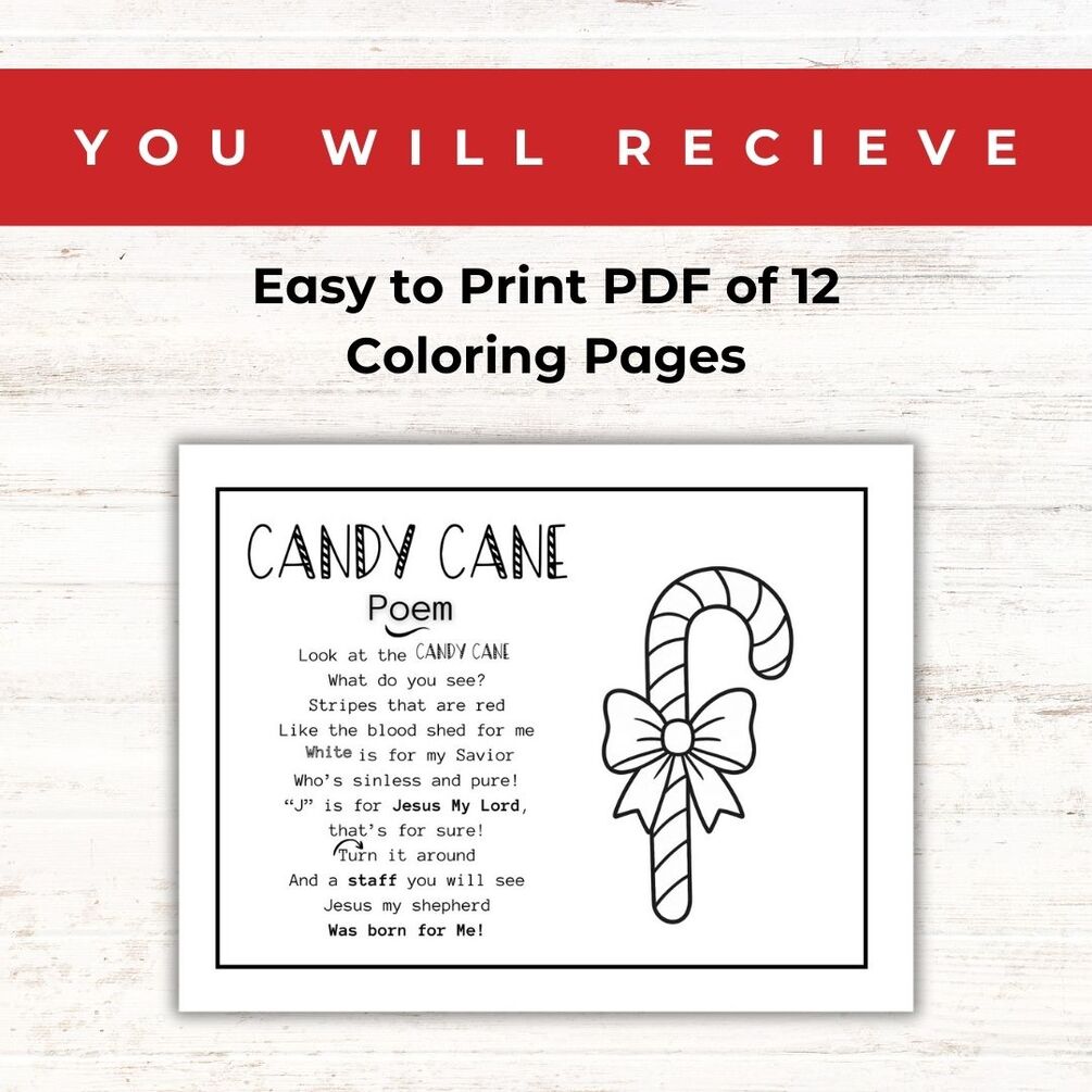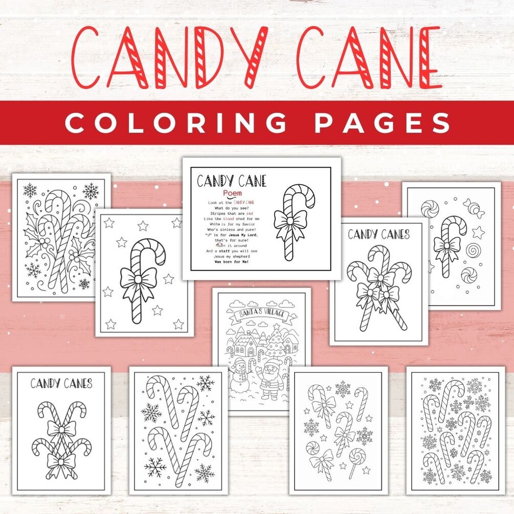 Add a little joy and meaning to your Christmas season with this set of 11 delightful candy cane coloring pages, plus a bonus page featuring the beloved Candy Cane Poem and a full-color candy cane illustration!