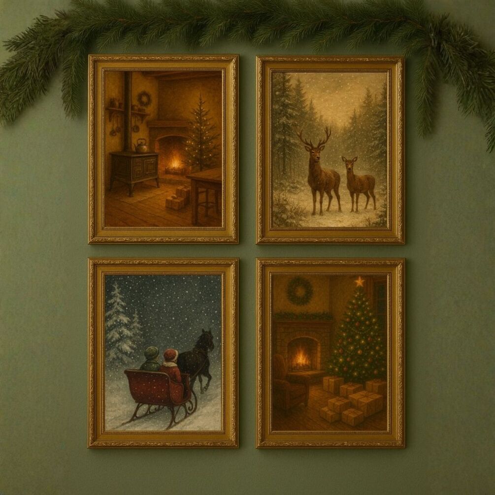 Cozy, vintage-inspired Christmas wall art to bring warmth and joy to your home this season.