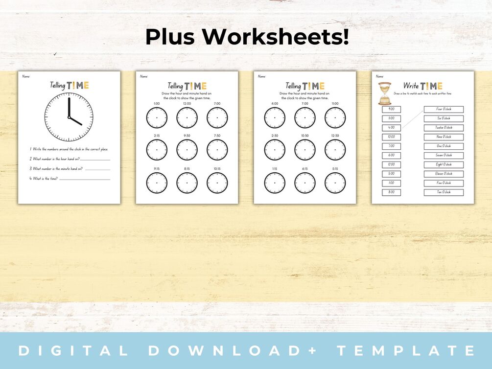 Telling Time Worksheets | Kids Clock | Learn To Tell Time | Printable Learning Game | Educational Clock |