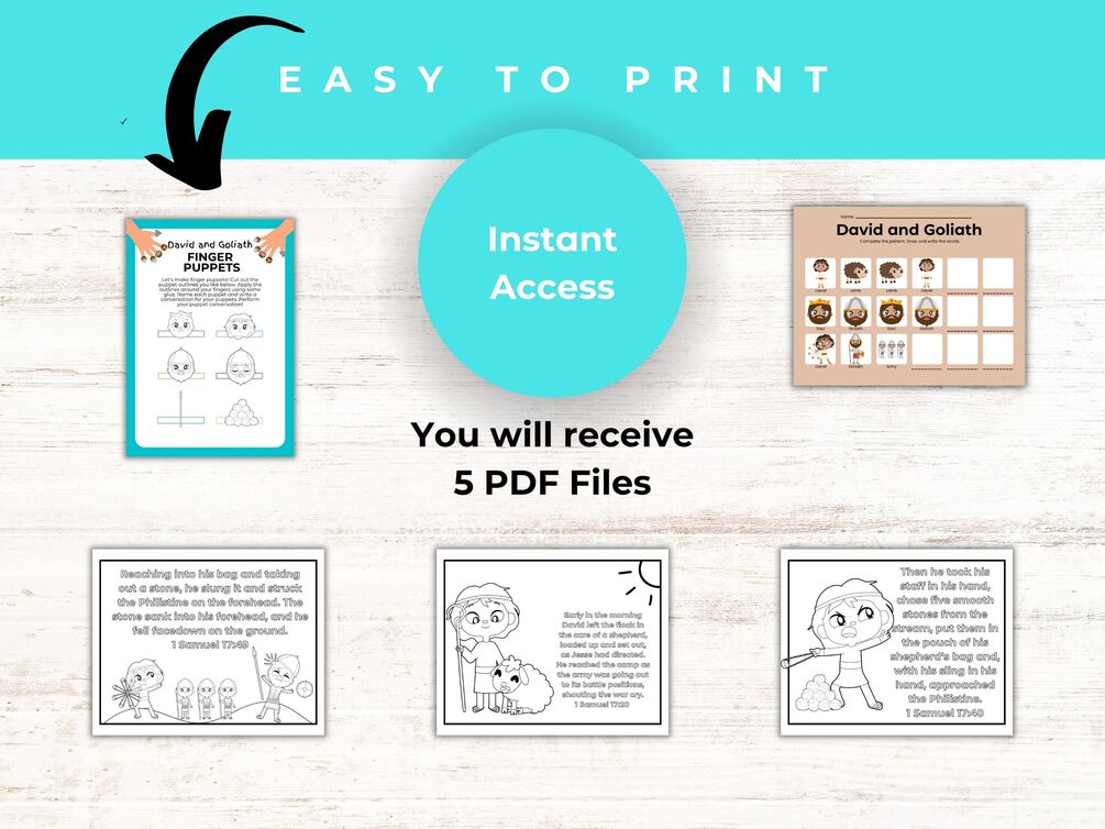 David and Goliath is a memorable story for little ones and always is a fun one to try and explain as an adult! There are 6 different printables files for teaching and edifying your classroom or at-home learning!