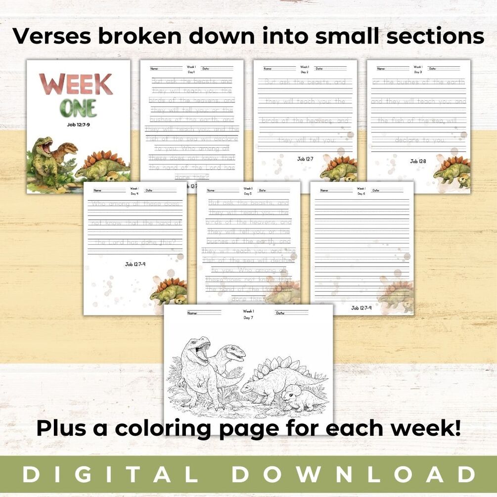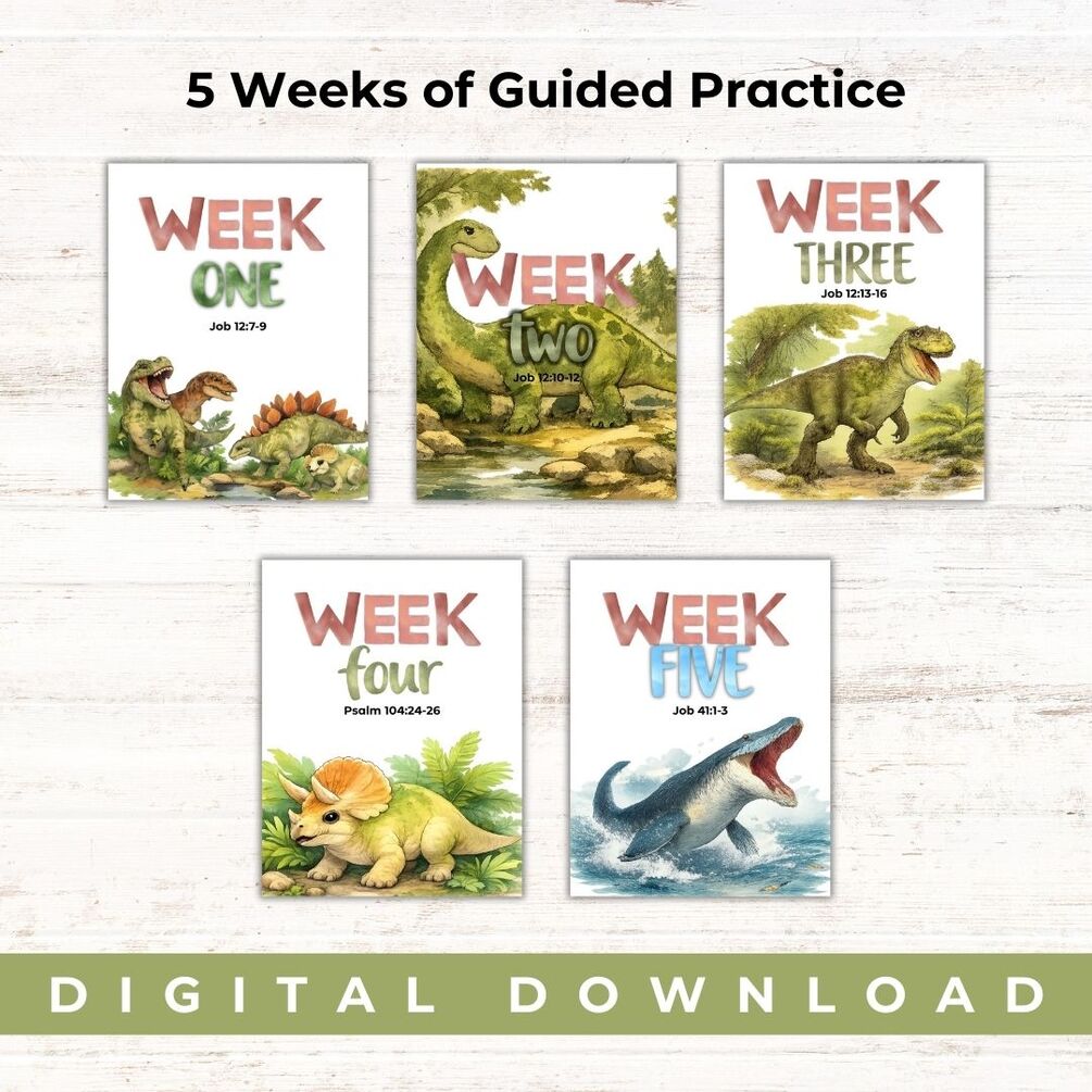5 Weeks of Dinosaur-Inspired Bible Verse Copywork (ESV Translation):