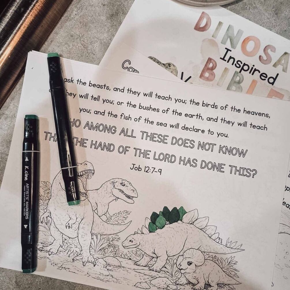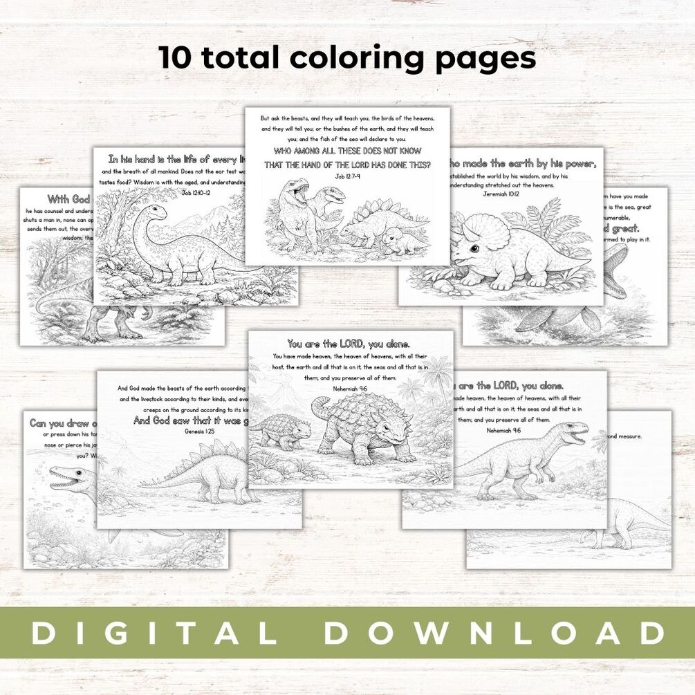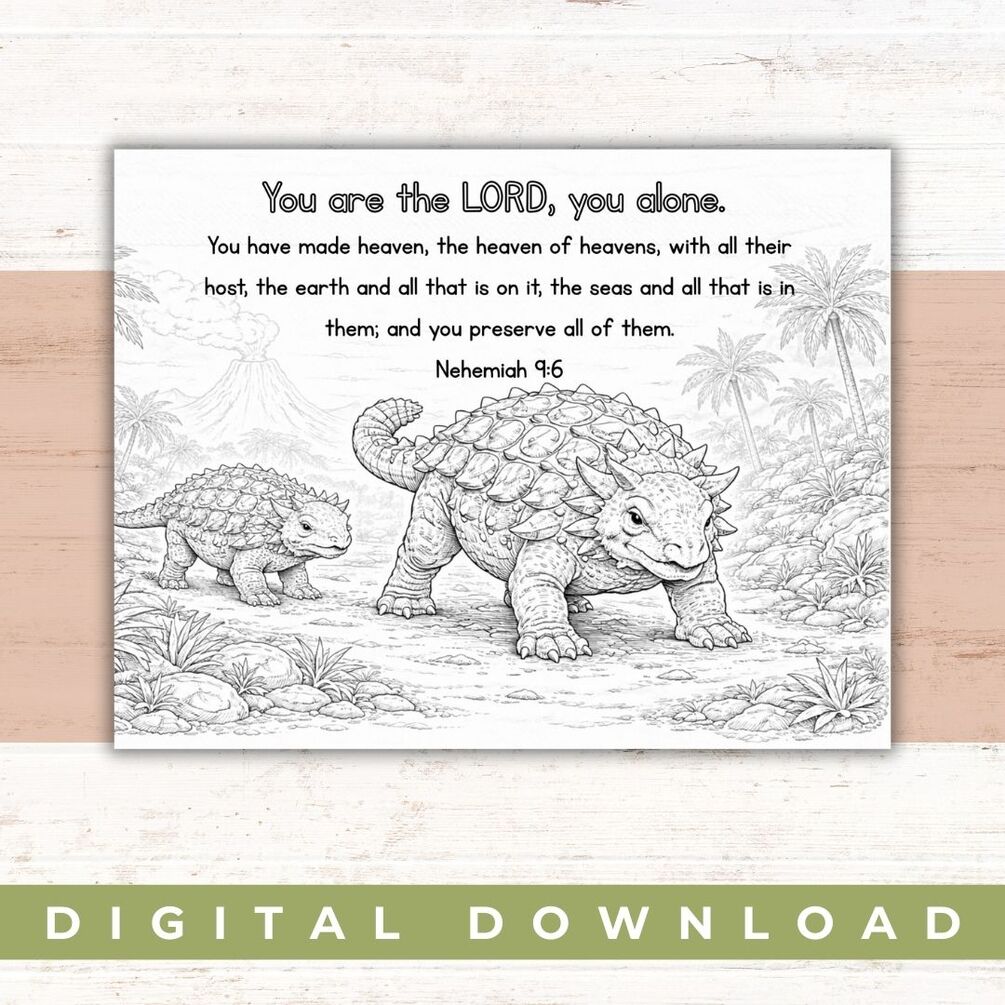 Bring together a love for dinosaurs and a love for God’s Word with these Bible-based dinosaur coloring pages! This printable set is designed to help children explore God’s mighty creation while engaging with Scripture in a gentle, meaningful way.