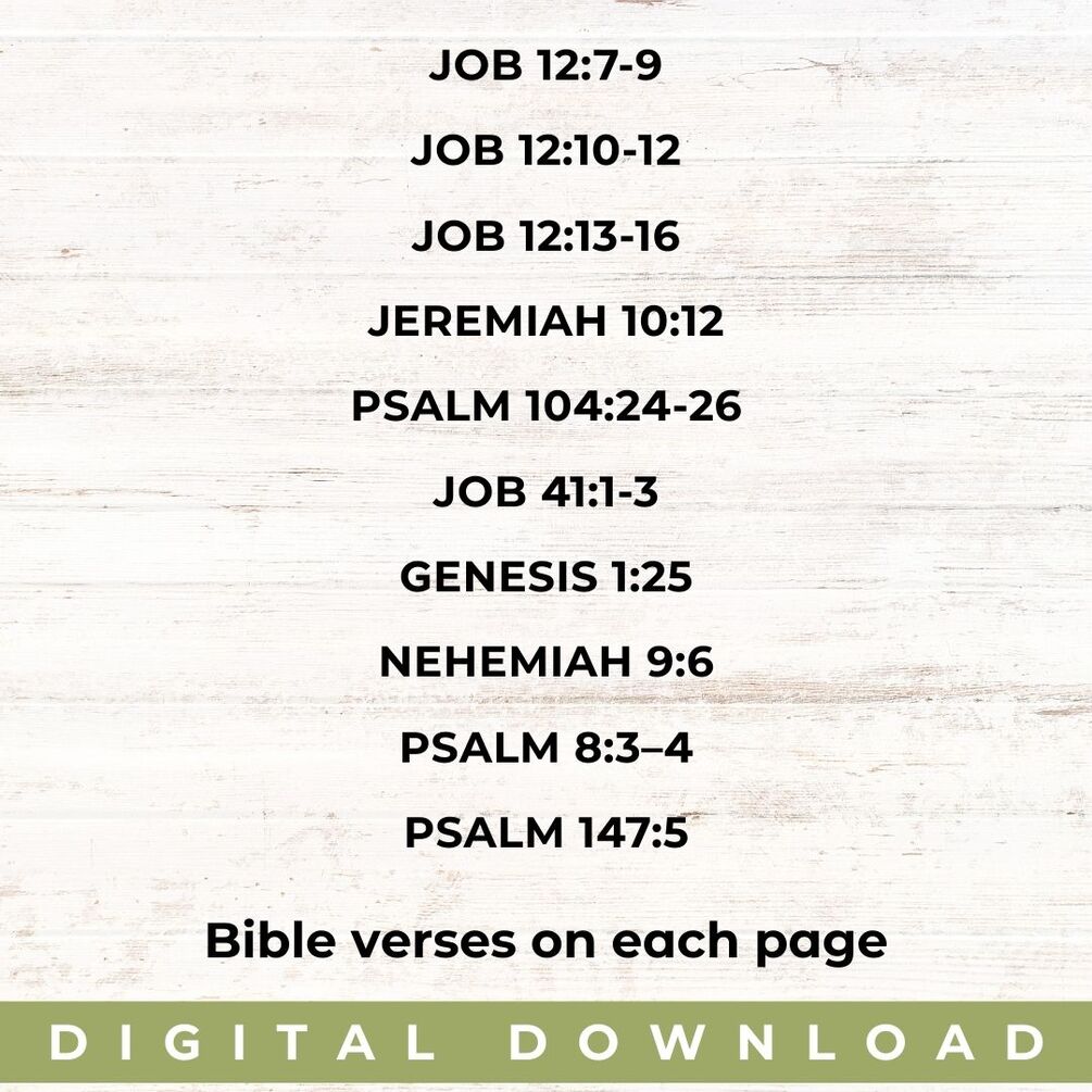 Each coloring page features detailed dinosaur illustrations paired with ESV Bible verses focused on creation, God’s power, wisdom, and wonder. A blank space is included at the top of each page, making it perfect for scripture writing, memory work, or copywork.
