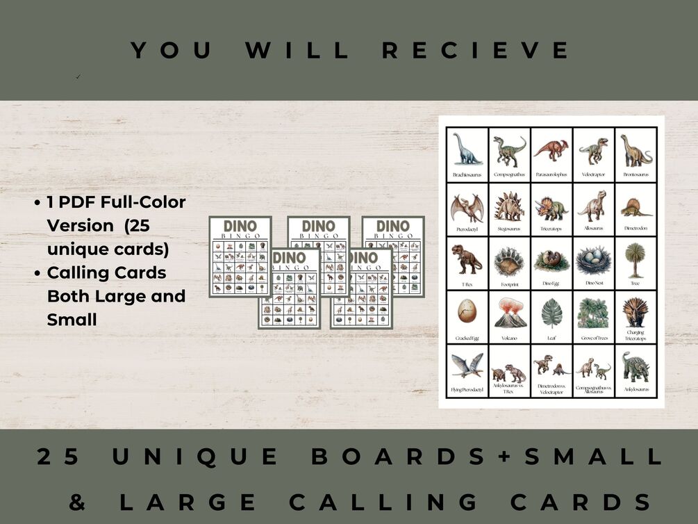 Dinosaur Bingo | Dino | Dinosaur Game | 25 Bingo Cards | Dinosaur Birthday Party