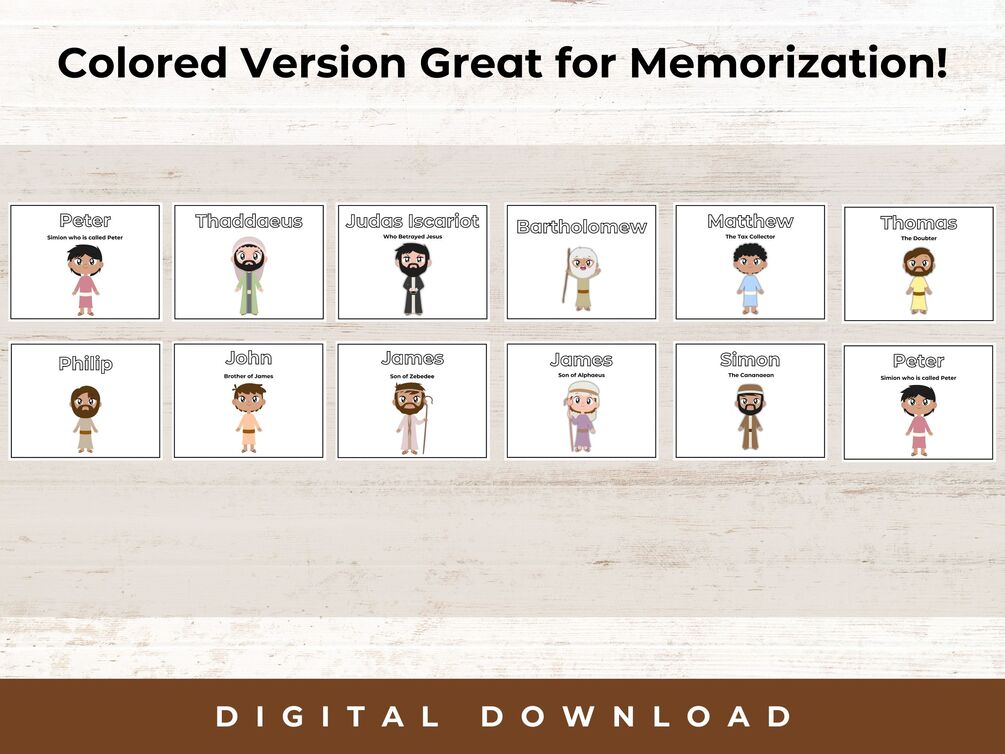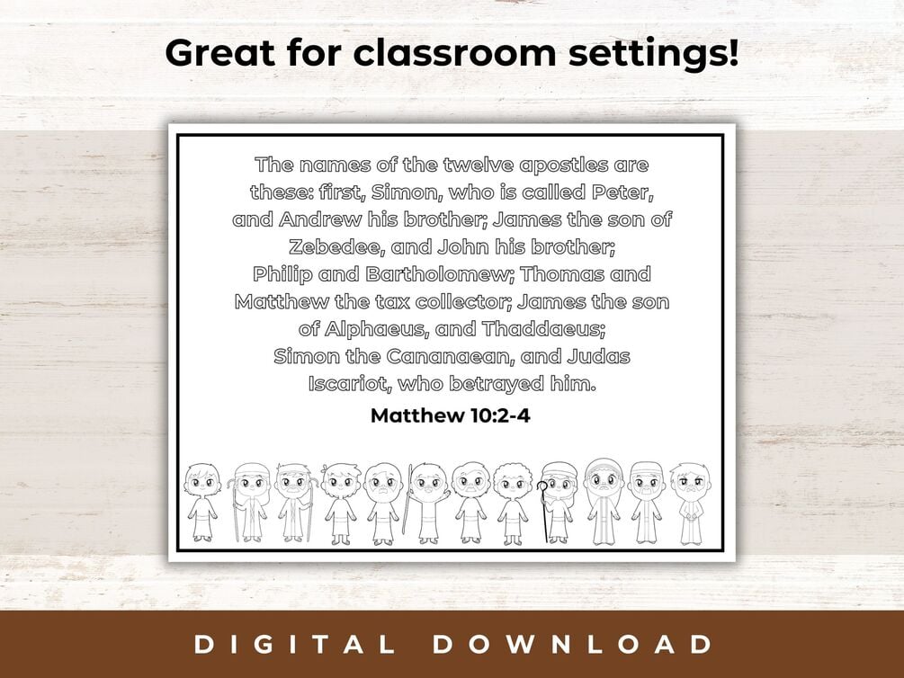 The 12 disciples, known as the Apostles, played pivotal roles in shaping the early foundations of Christianity as documented in the New Testament. Bible coloring pages are a great way to bring these stories of Jesus to life. Our 12 disciples coloring pages are a fun and interactive experience as we explore the 12 disciples! These are great for homeschooling families, Sunday School lessons, or other personal use!