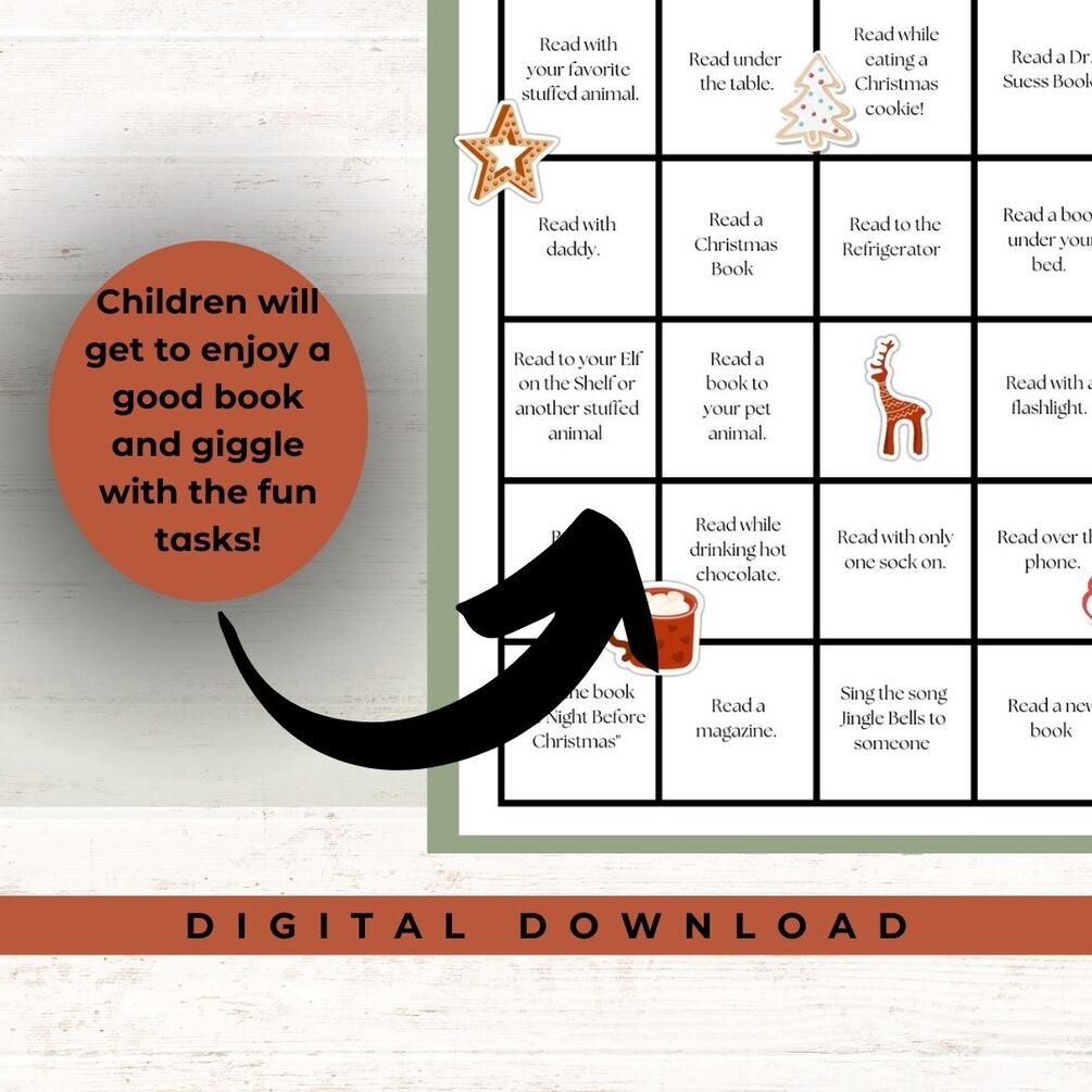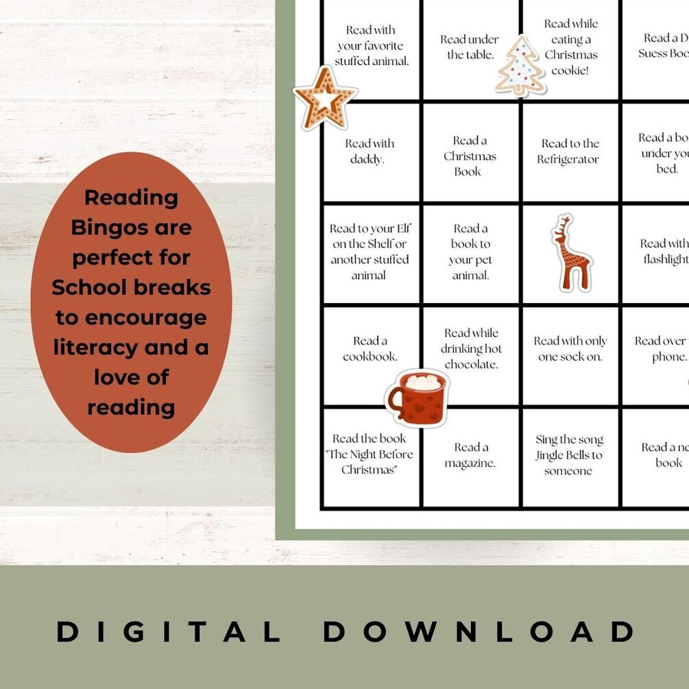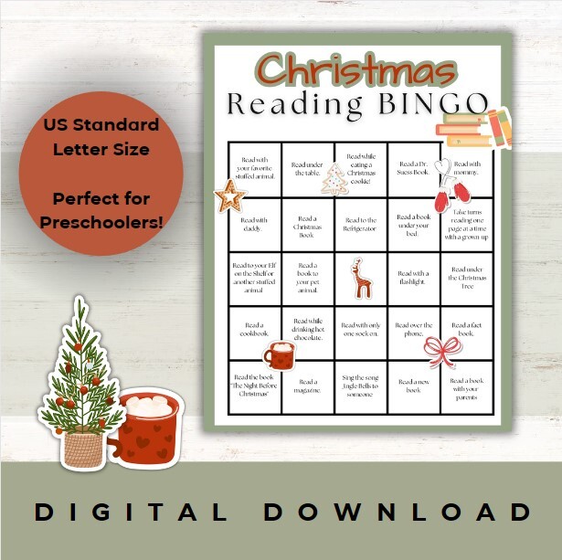 Silly little BINGO sheets like this will keep your child moving and exposed to literacy during the holiday break. A preschool Christmas Reading Bingo is a perfect way to encourage the joy of literacy.