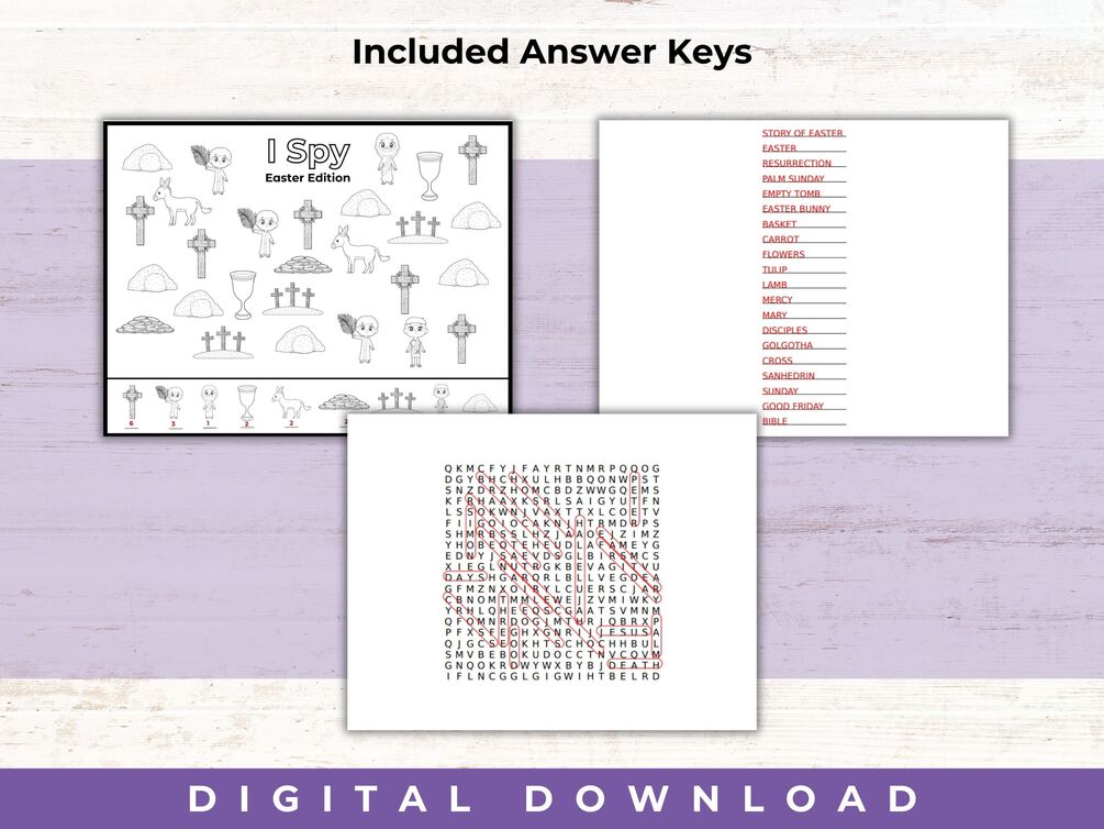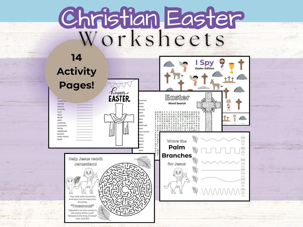 These Christian Easter Worksheets provide an engaging and educational way for children of all ages to explore the true meaning of Easter. In this pack of worksheets, you will find mazes, word searches, coloring, Easter I Spys, and more. They cover a variety of topics related to the Biblical traditions surrounding this milestone holiday, ensuring a well-rounded understanding for kids. Enjoy these Christian Easter worksheets!
