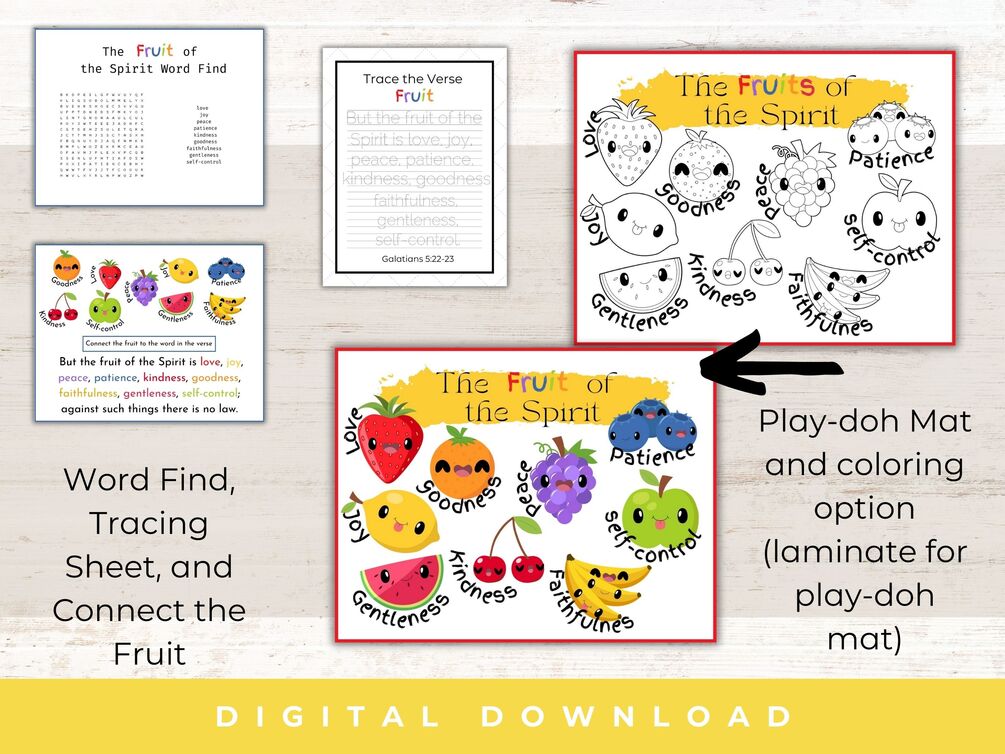 Fruit of the Spirit Activity | Fruit of the Spirit Printables | Fruit of the Spirit Coloring Pages | Cards | Spinner | Craft | Activities |