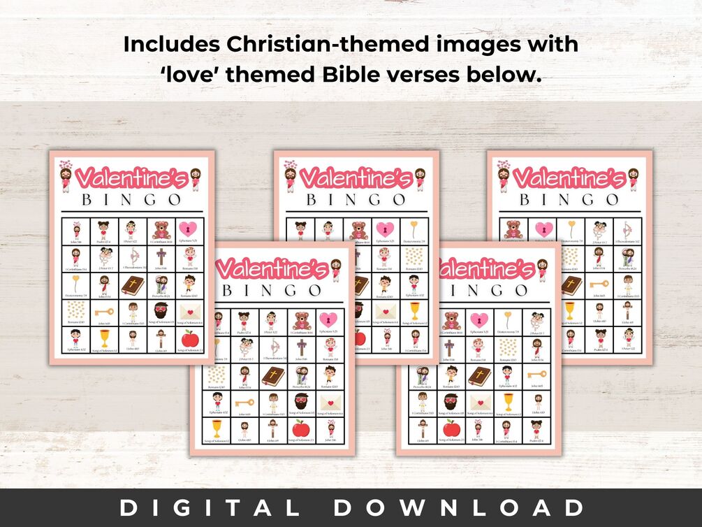 Valentine's Day is just around the corner, and what better way to celebrate the season of love than with a fun and engaging game that everyone can enjoy? If you're planning a gathering with family, friends, or classmates, these Printable Christian Valentine's Day Bingo Cards might just be the perfect addition to your festivities. There are 25 full-color Bingo cards featuring Christian elements plus Bible verses on love. Great for Sunday School, homeschool, or classroom parties! There is also a 10 card freebie option. Please make sure to check the 'freebie' or 'full version bingo' when you are selecting your version.