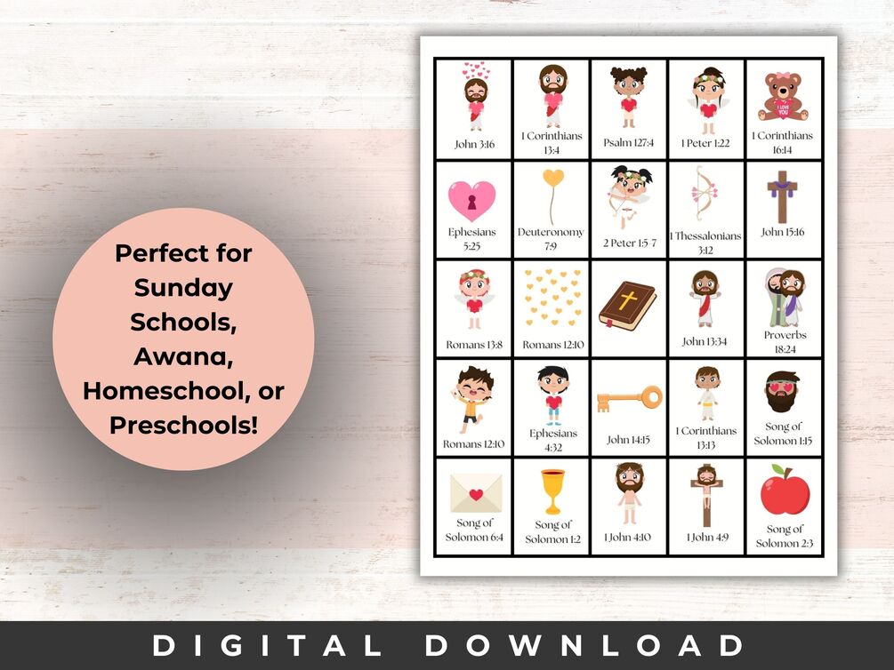 Printable Valentine's Day Bingo | Bingo Cards | Religious | Christian | Bible Bingo | Printable Bingo | Sunday School | Valentine's Day